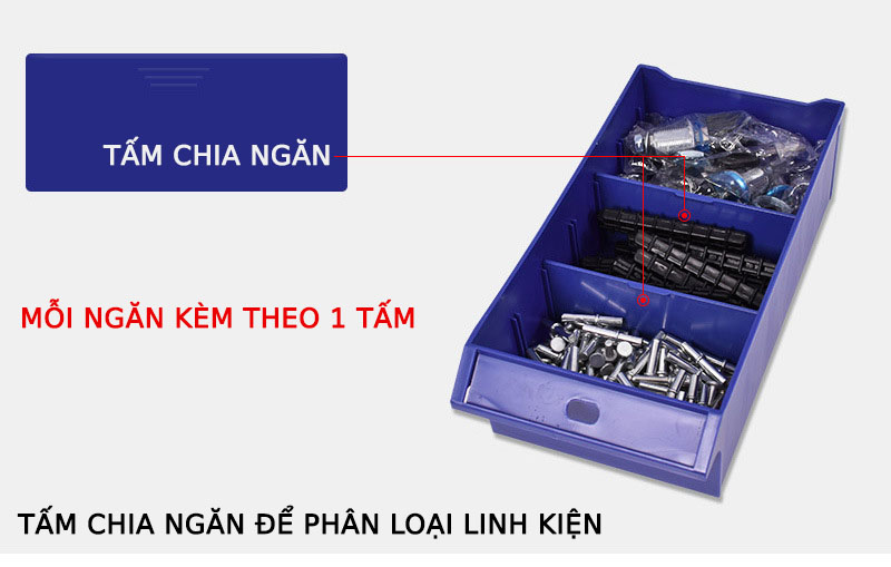 - Dễ dàng sử dụng: Các ngăn kéo có thiết kế trượt nhẹ nhàng, giúp người dùng dễ dàng tiếp cận và lấy linh kiện mà không tốn quá nhiều công sức.